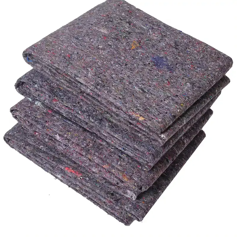 废粘针刺非织造布生产线以各种废布条纤维为原材料,将废料纤维放入开包机中进行混合处理,由开松机预开松后送入大仓内均匀混合,随后来到主开进一步开松之后进入给棉机,给棉机根据需求定量给棉在梳理机内成薄层网状,纤维网在铺网机铺到一定重量和厚度再由针刺机进行加工,加工出来的成品废粘在收卷分切机按要求分切成不同大小。